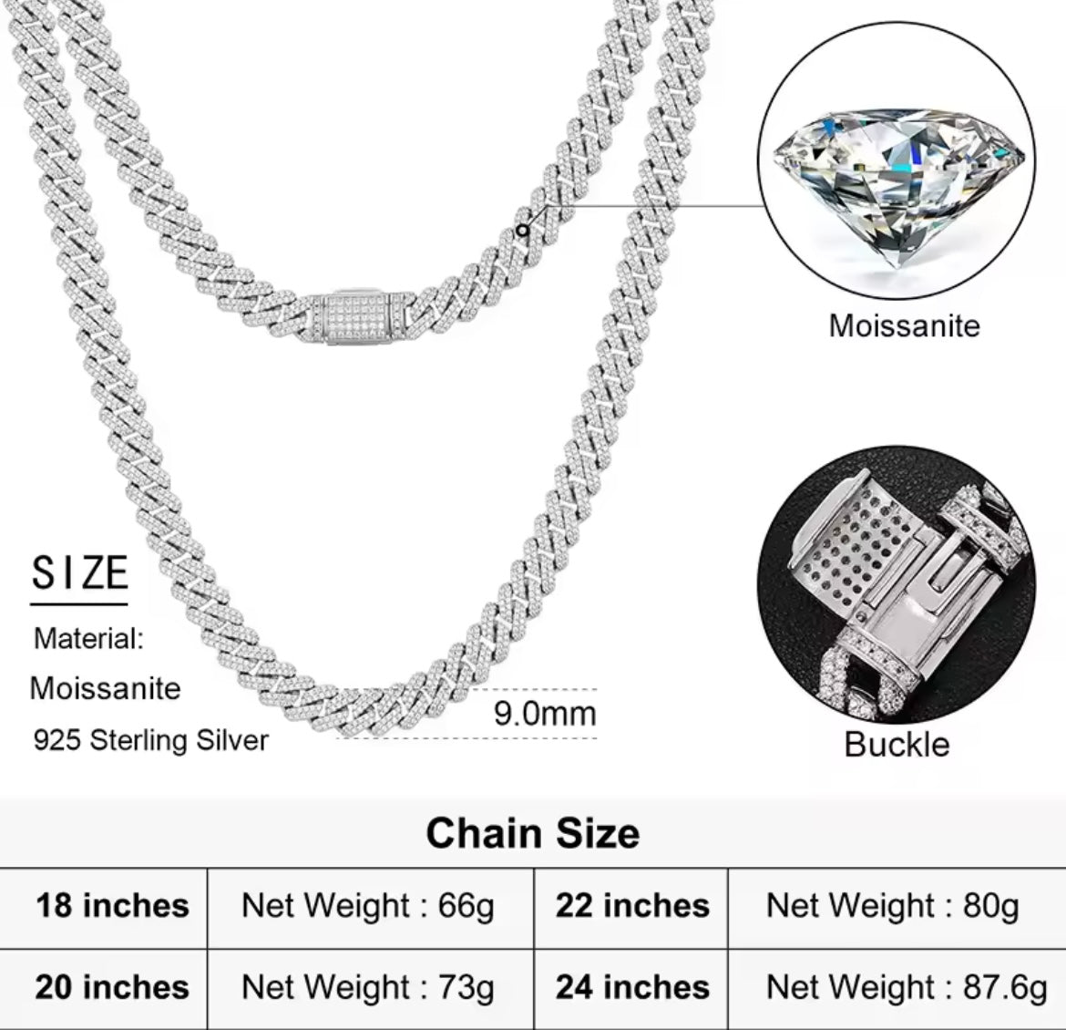 Featuring a Miami Cuban link chain with iced out D color VVS moissanite, it exudes elegance and sophistication.