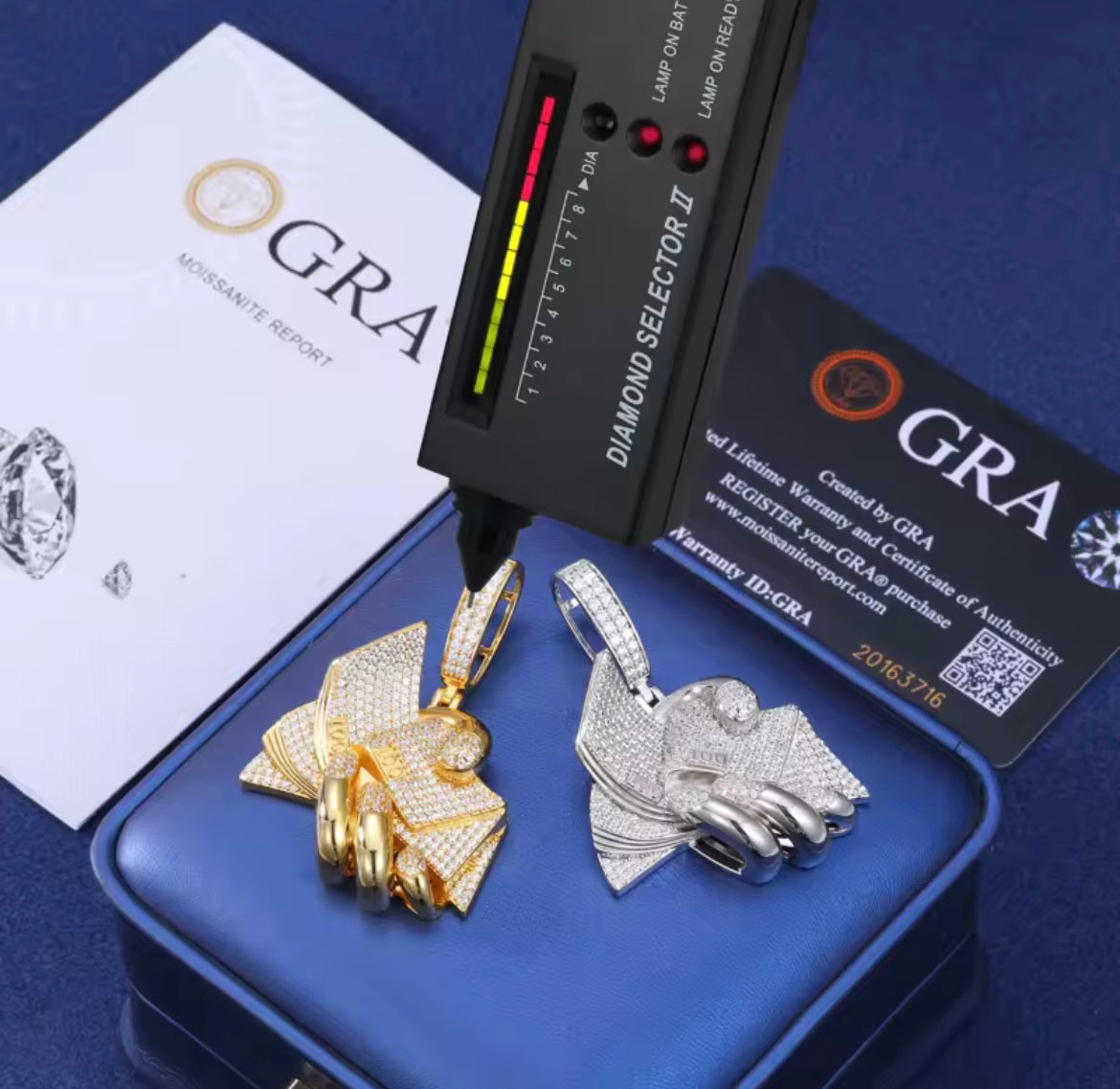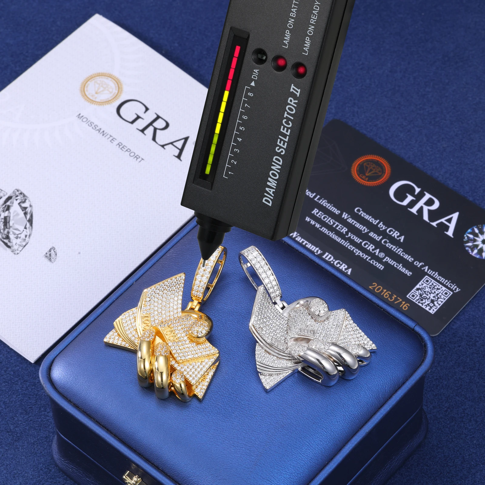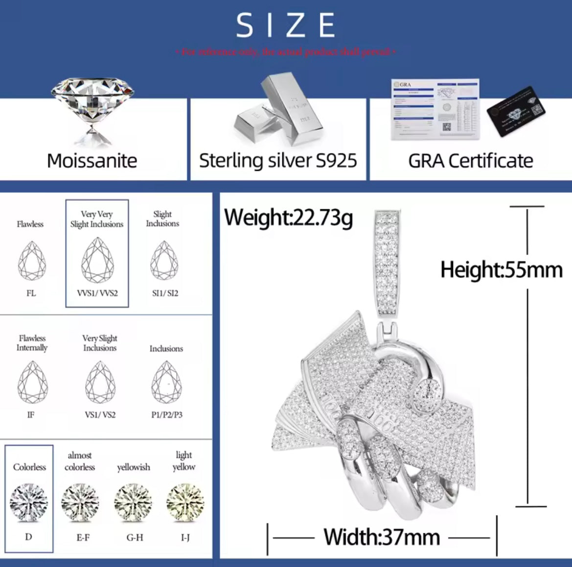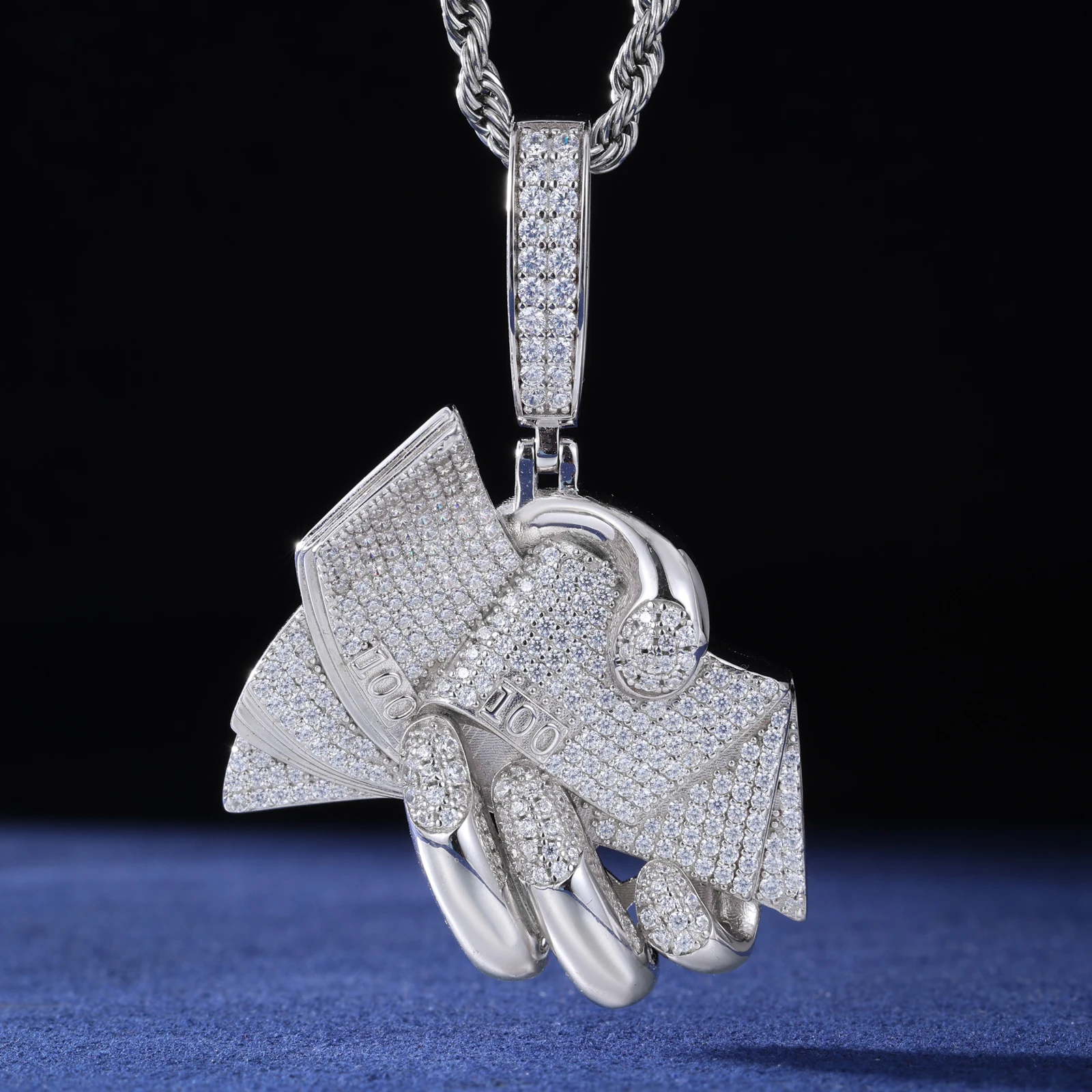 Featuring a Bling Iced Out Moissanite 100 Dollar Bill Pendant, this piece stands out with its distinctive design.