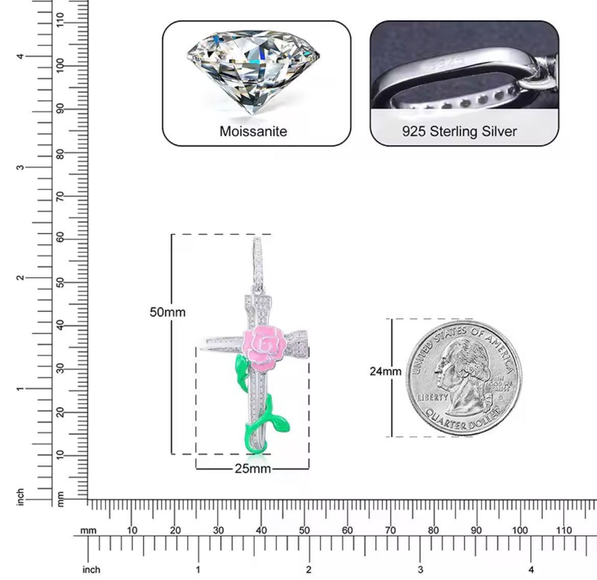Material : S925 Silver, Moissanite