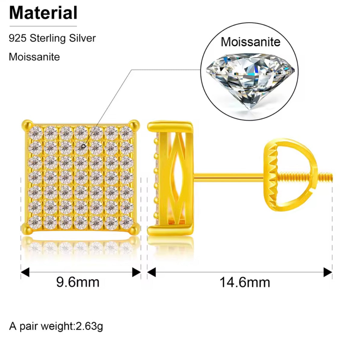 Material : S925 Silver, Moissanite