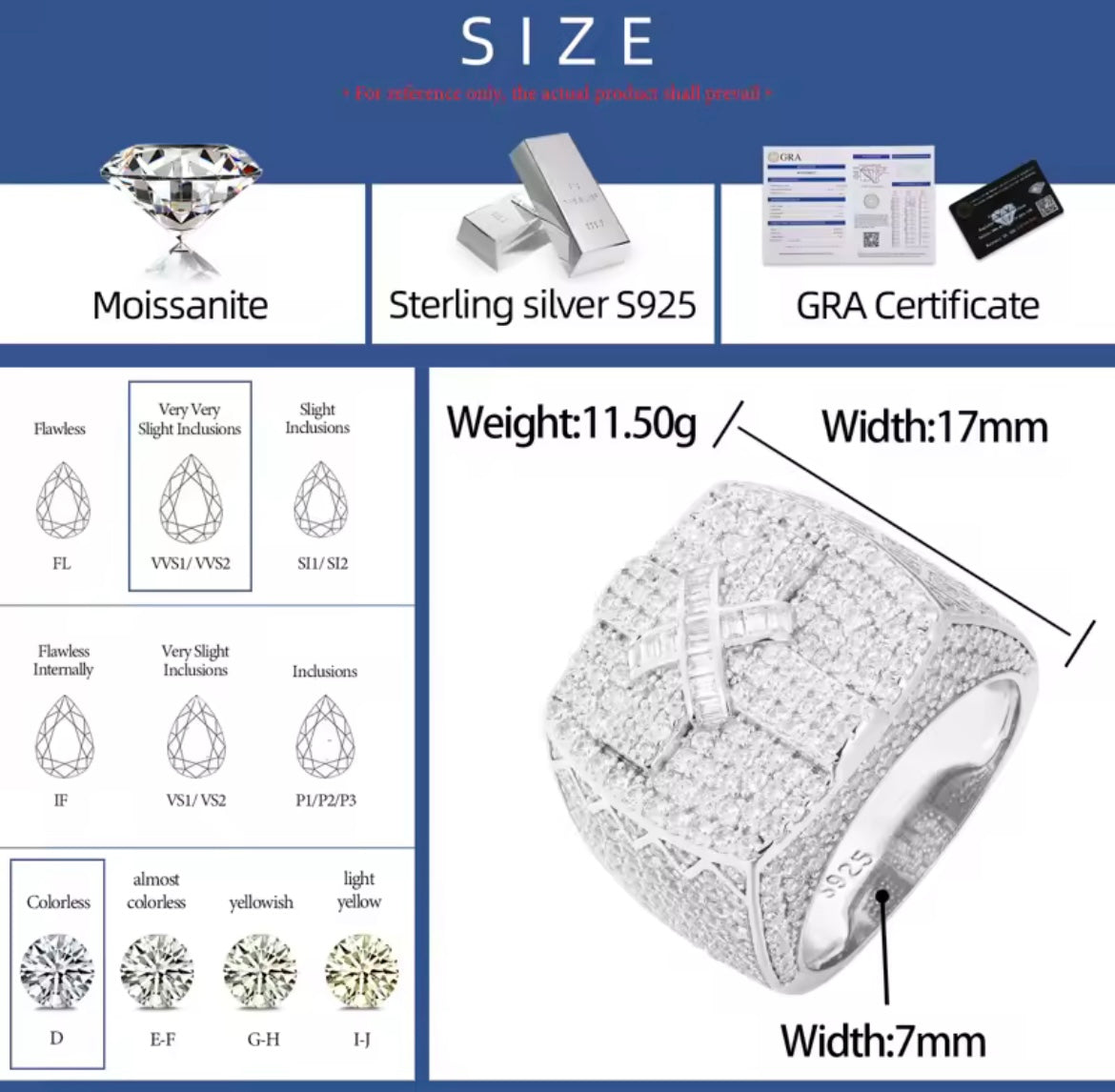 1: COLOR: The fineness range of the Moissanite we use is D grade, and the fineness grade is colorless.