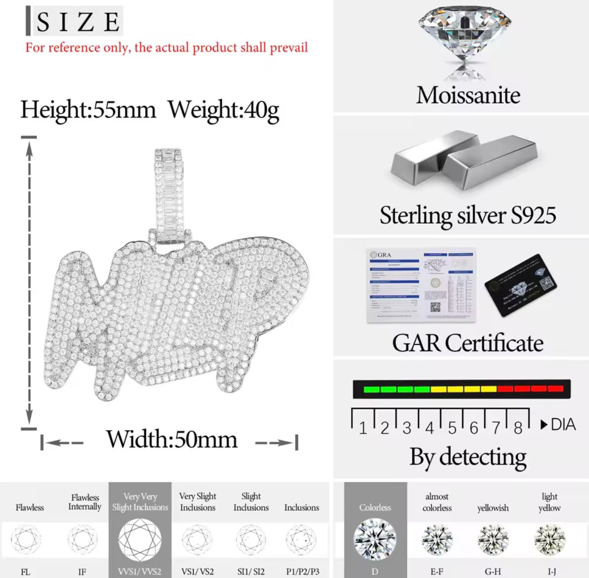 2.LETTERS/DESIGN YOU WANT ON THE PENDANT