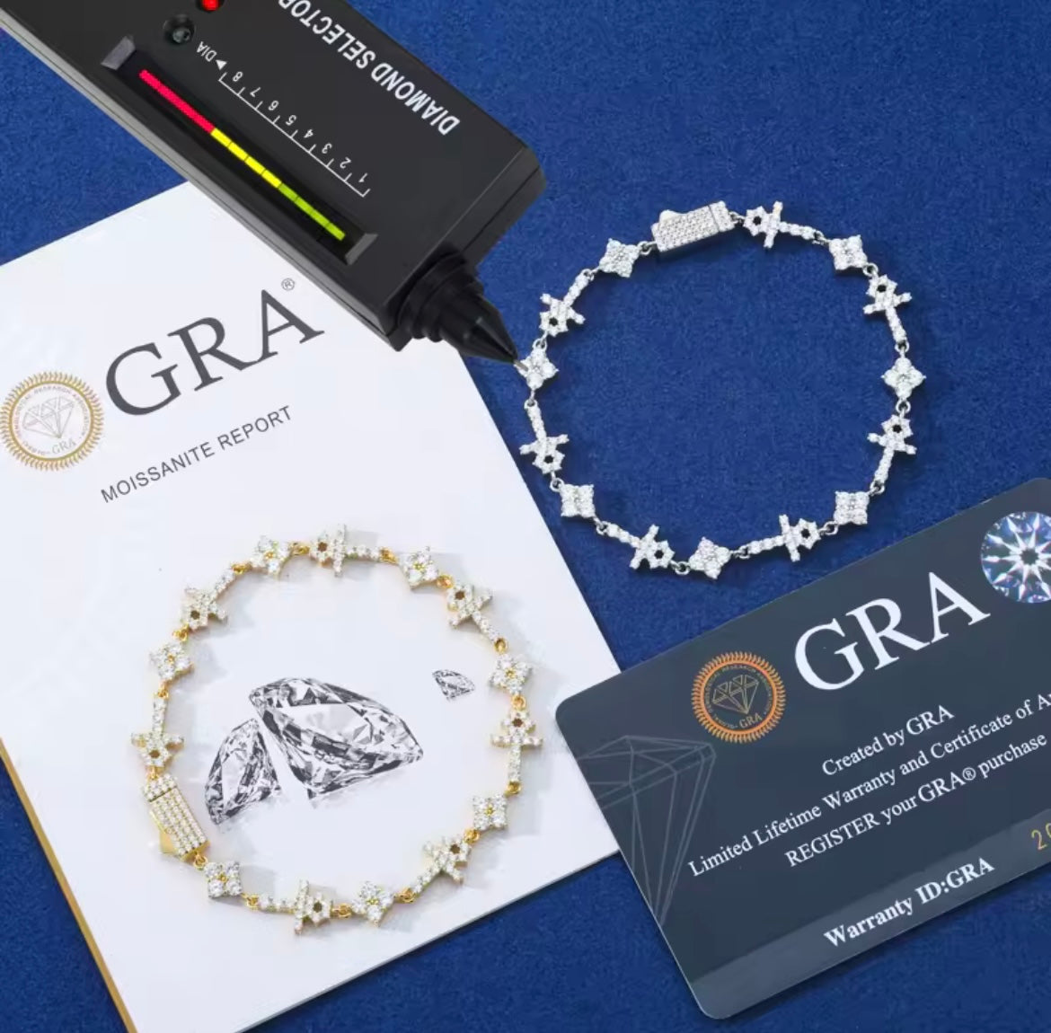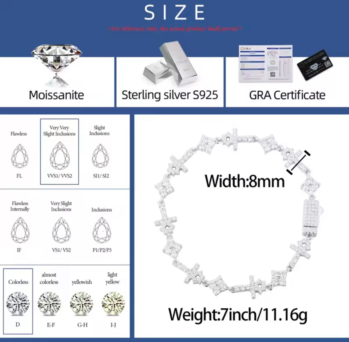 Crafted with 925 sterling silver and adorned with sparkling Moissanite diamonds, this bracelet exudes luxury and durability.