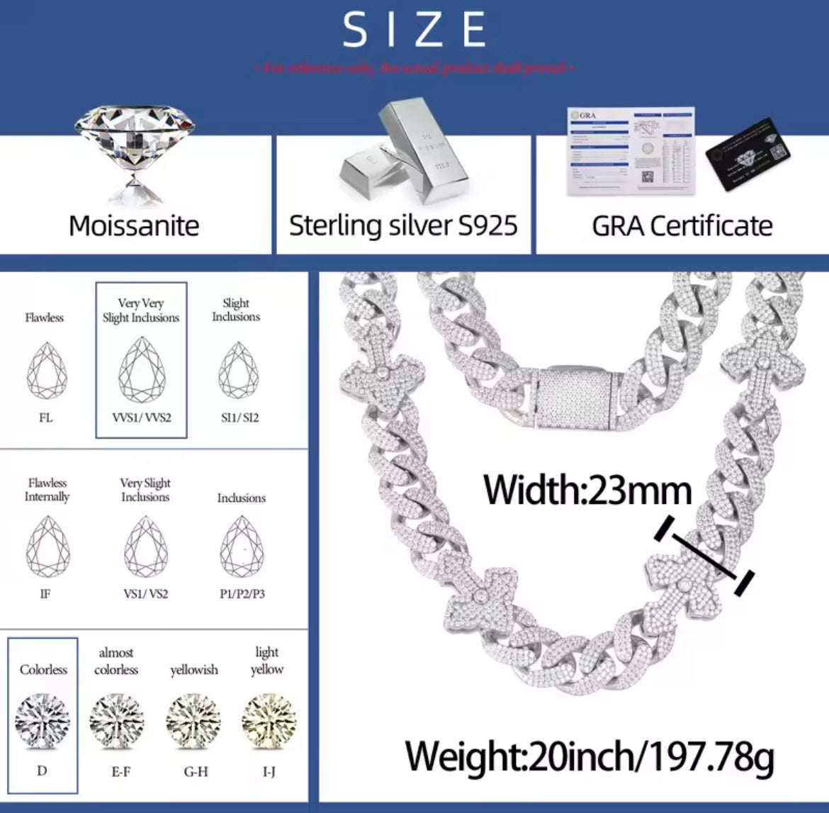 Material : S925 Silver, Moissanite