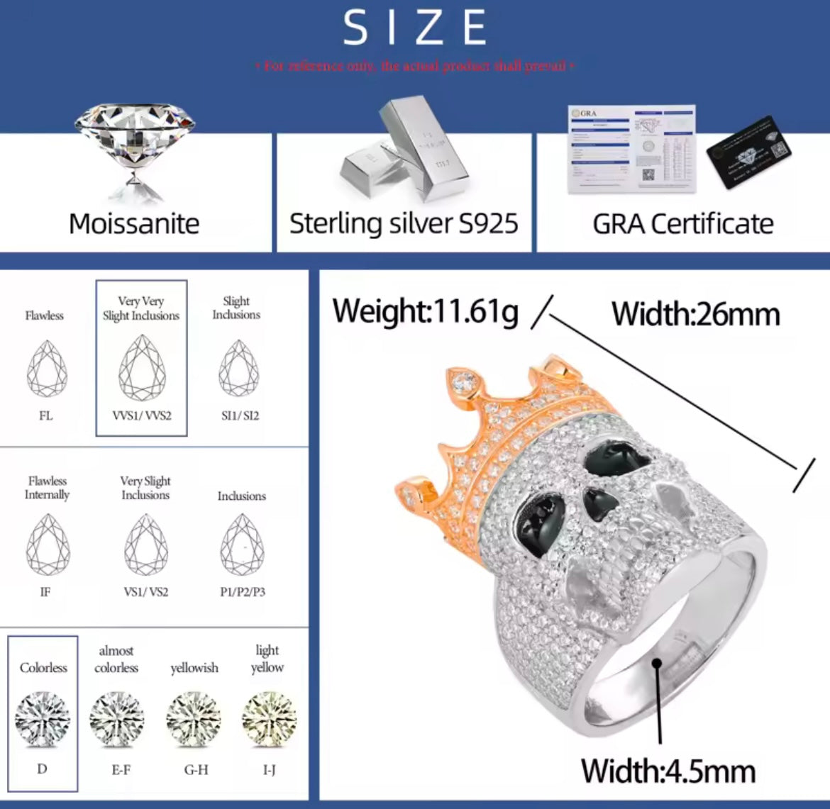 1: COLOR: The fineness range of the Moissanite we use is D grade, and the fineness grade is colorless.