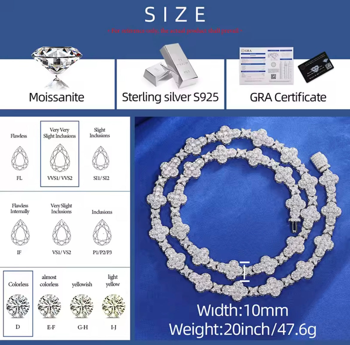 1: COLOR: The fineness range of the Moissanite we use is D grade, and the fineness grade is colorless.