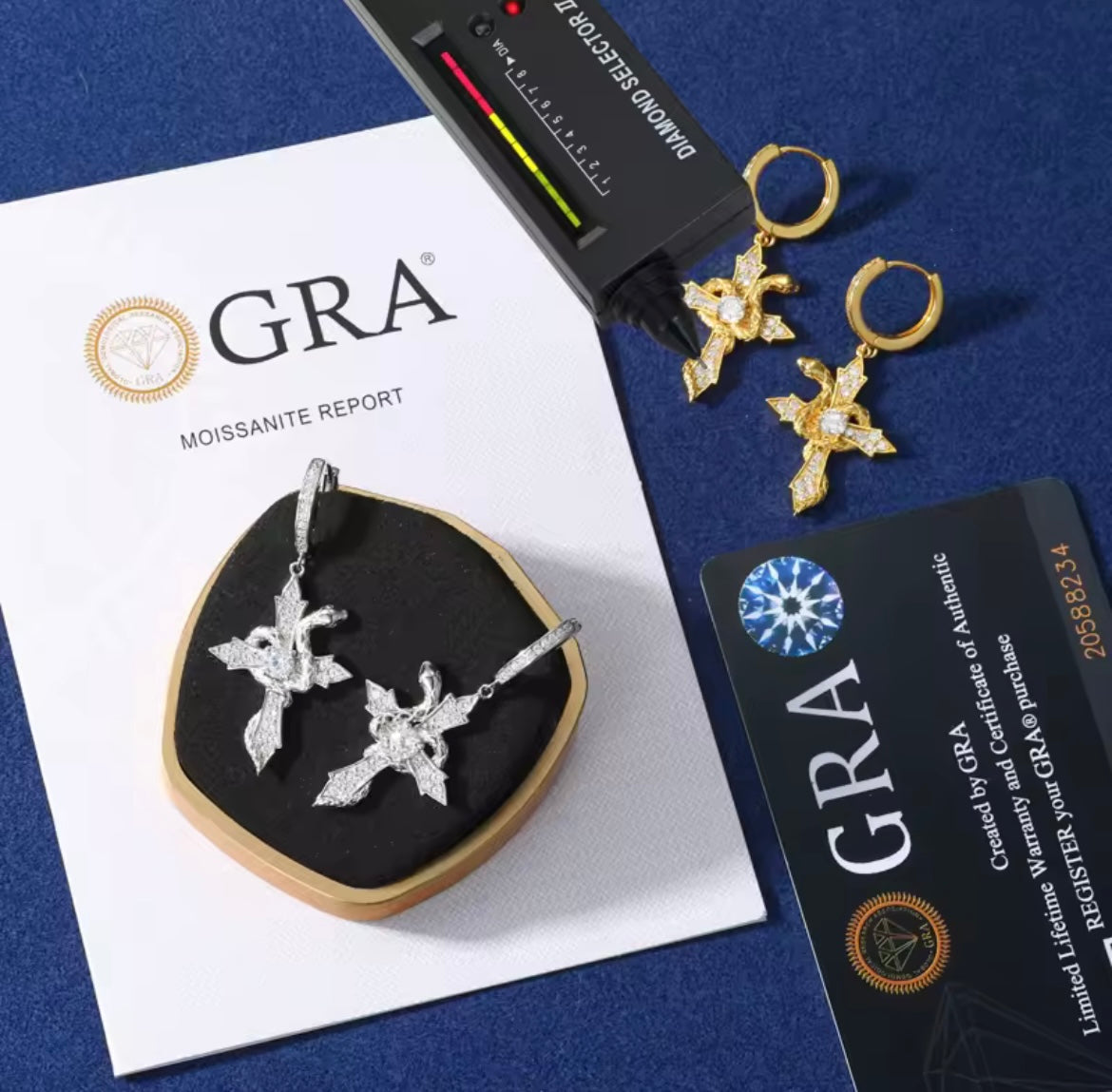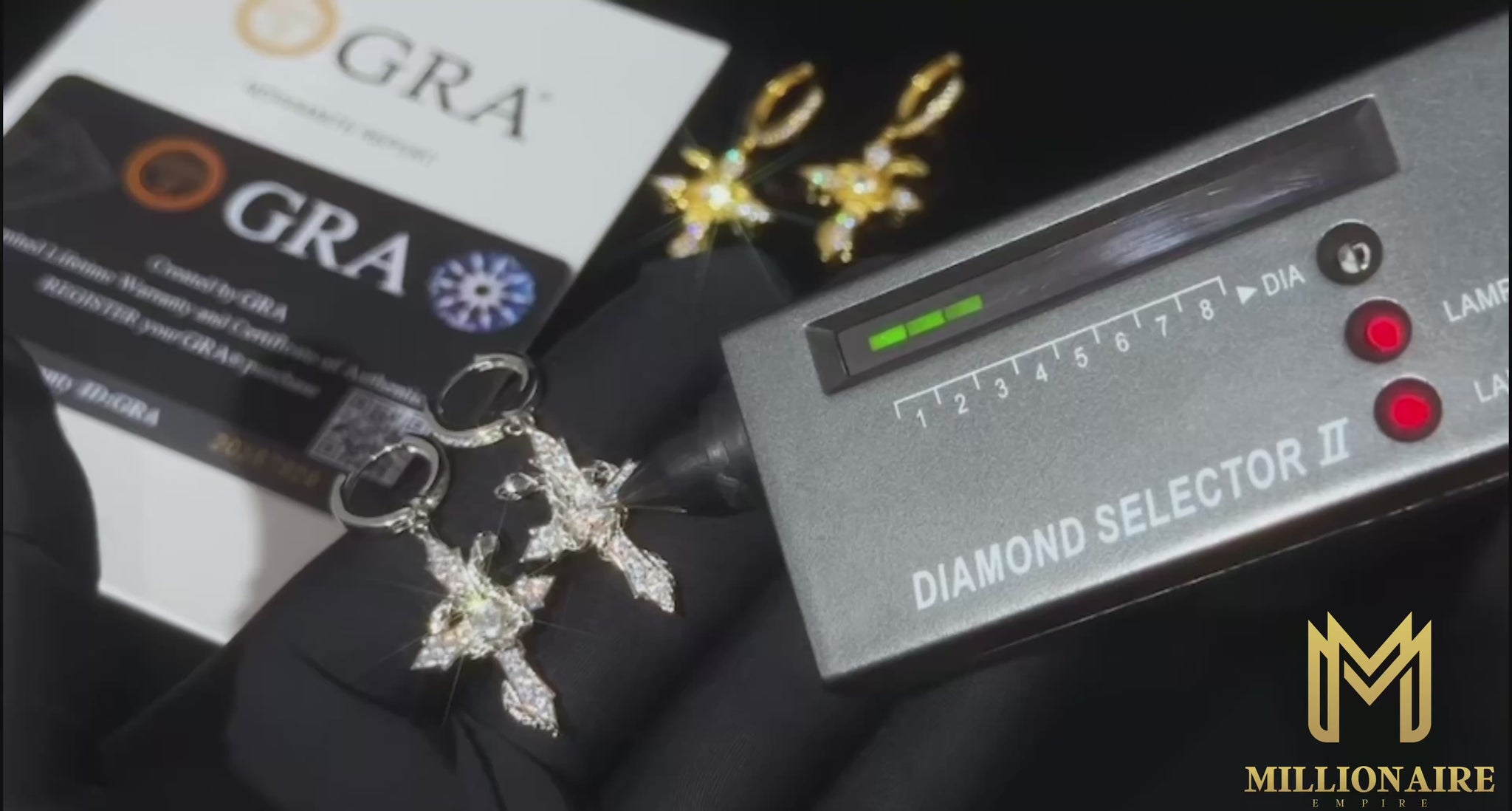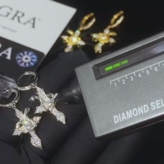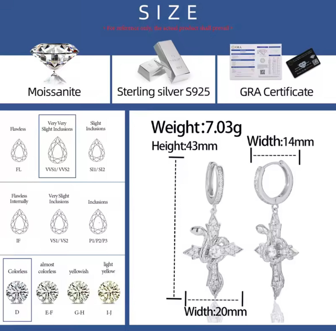Adorned with a VVS Moissanite, known for its brilliance and sparkle, enhancing the earrings' appeal.