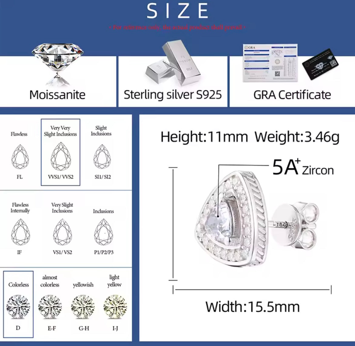 Material : S925 Silver, Moissanite