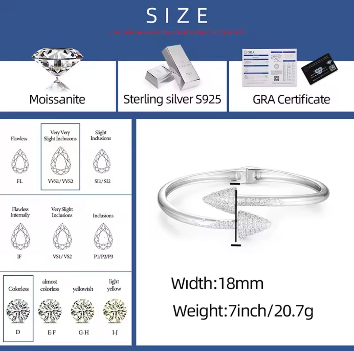 Material : S925 Silver, Moissanite