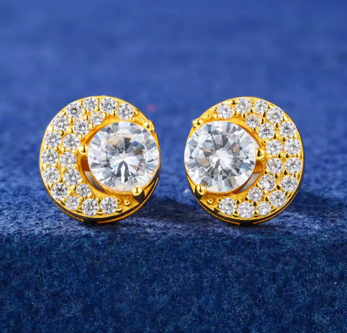 Featuring a stunning Moissanite main stone, these earrings add a touch of elegance and sparkle to any outfit.
