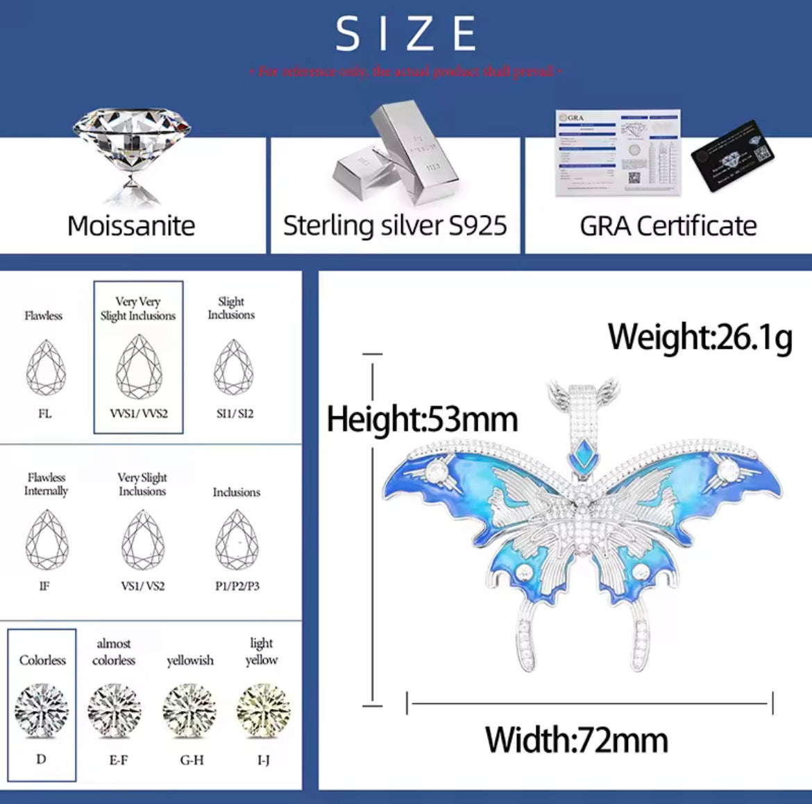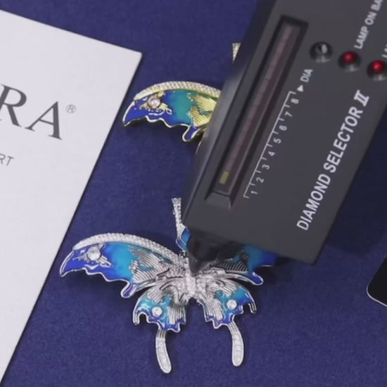 This pendant features a unique customized moissanite enamel butterfly design, adding a touch of elegance to any outfit.