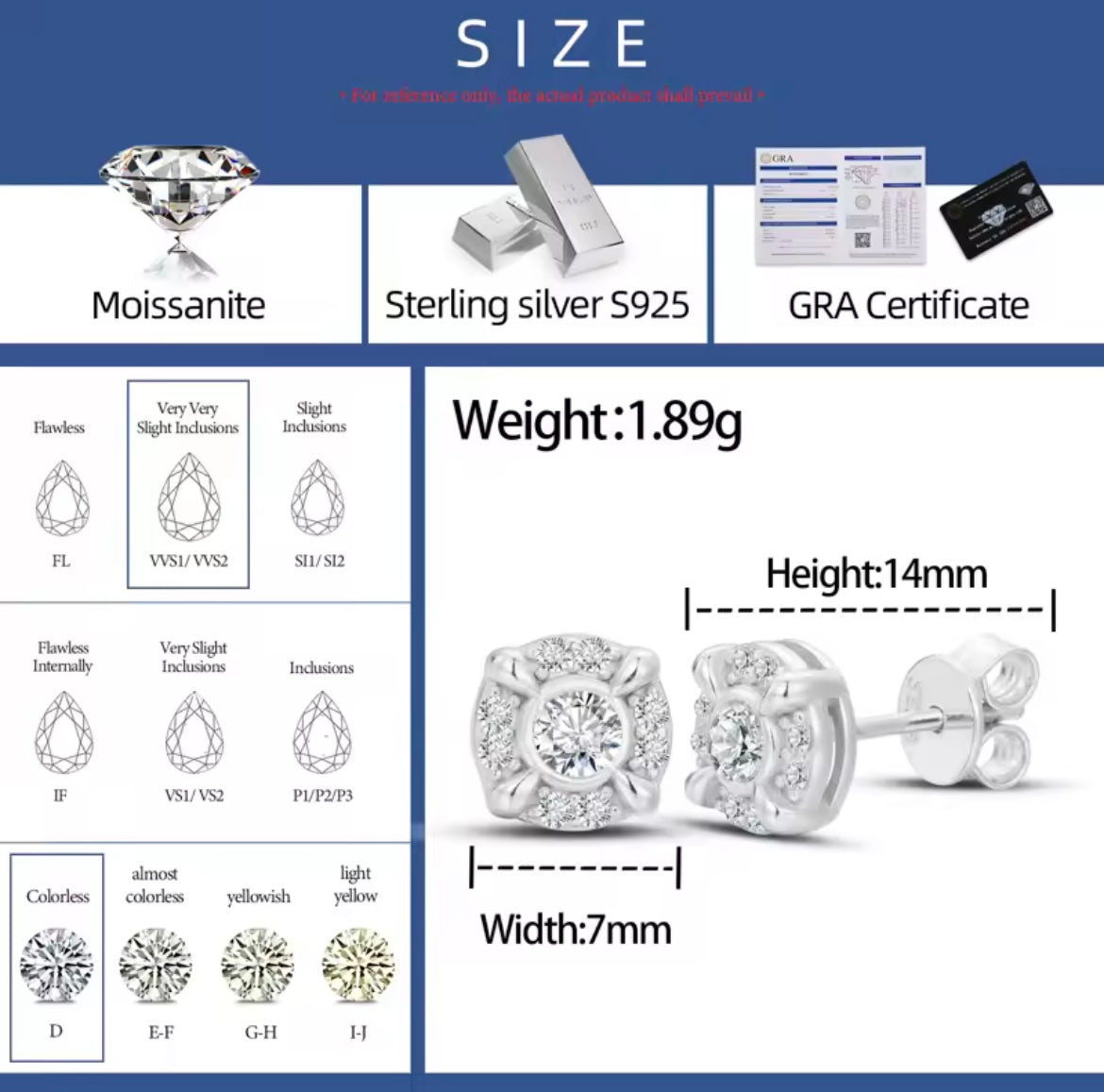 Material : S925 Silver, Moissanite