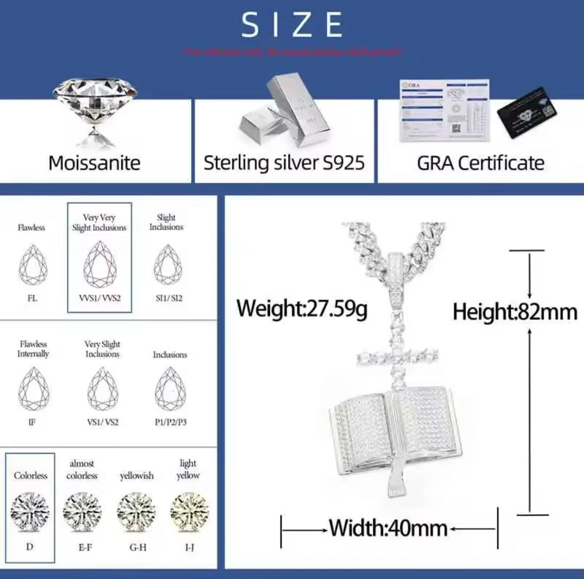 1: COLOR: The fineness range of the Moissanite we use is D grade, and the fineness grade is colorless.