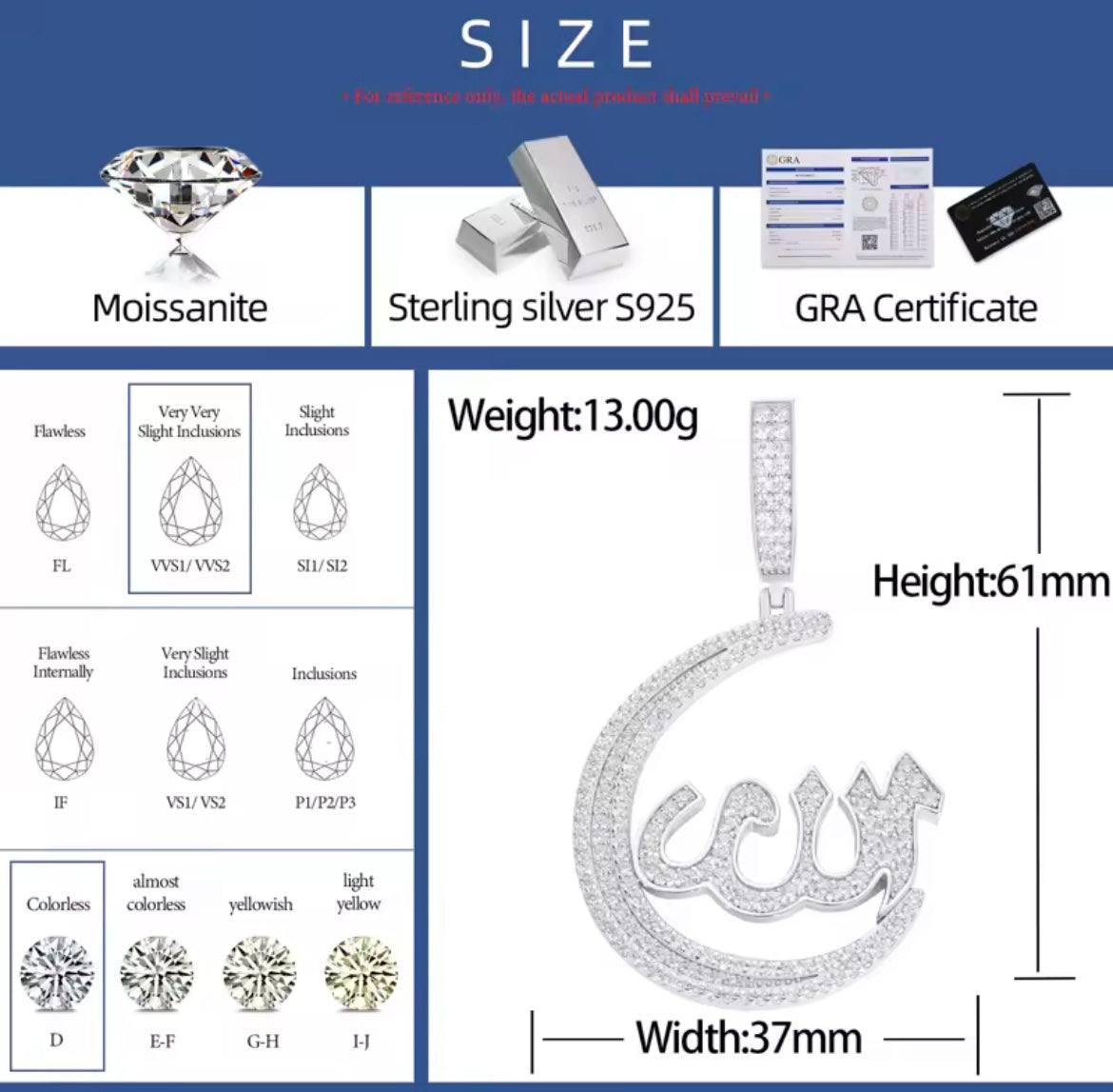 1: COLOR: The fineness range of the Moissanite we use is D grade, and the fineness grade is colorless.